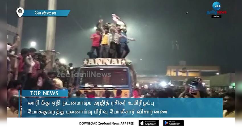 லாரி மீது ஏறி நடனமாடிய அஜித் ரசிகர் உயிரிழந்த சம்பவம் அதிர்ச்சியை ஏற்படுத்தியுள்ளது.