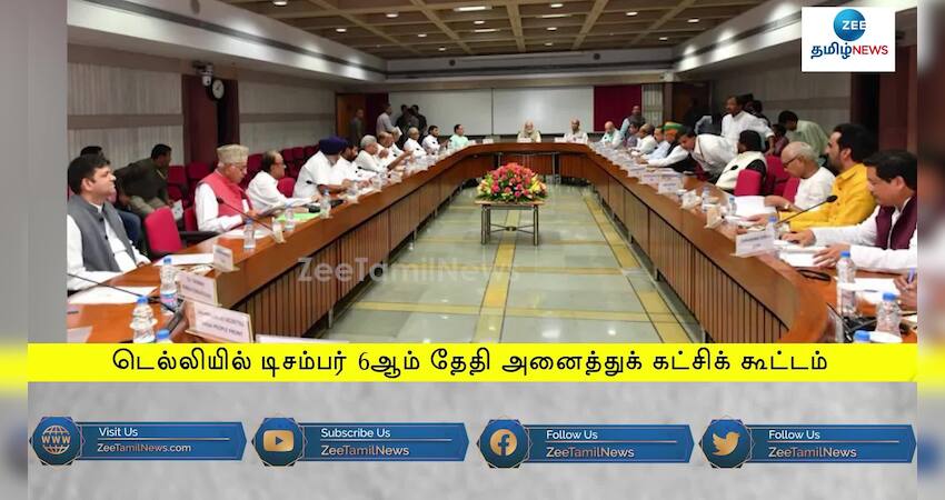 நாடாளுமன்ற குளிர்கால கூட்டத்தொடரை முன்னிட்டு டெல்லியில் அனைத்துக் கட்சி கூட்டம் டிசம்பர் 6ஆம் தேதி நடக்கவிருக்கிறது