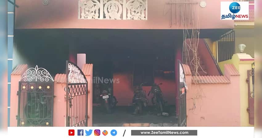 வீட்டின் முன் நிற்க வைக்கப்பட்ட வாகனங்களுக்கு தீவைத்ததால், வீடு தீப்பற்றி எரிந்தது
