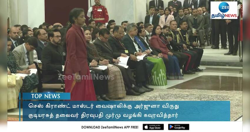 செஸ் கிராண்ட் மாஸ்டர் வைஷாலிக்கு குடியரசுத் தலைவர் திரவுபதி முர்மு அர்ஜுனா விருது வழங்கினார்.