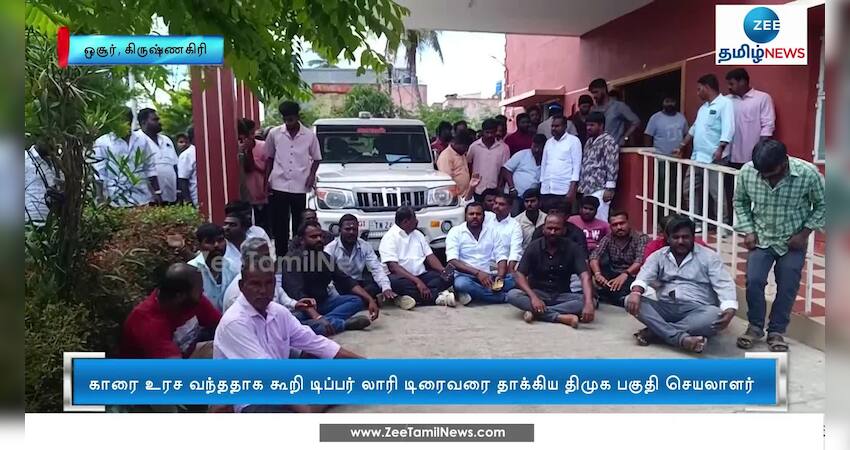 ஒசூரில் காரை உரச வந்ததாக கூறி டிப்பர் லாரி டிரைவரை தாக்கிய திமுக பகுதி செயலாளரைக் கைது செய்யக்கோரி 300க்கும் மேற்பட்டோர் காவல்நிலையத்தை முற்றுகையிட்டதால் பரபரப்பு ஏற்பட்டது.