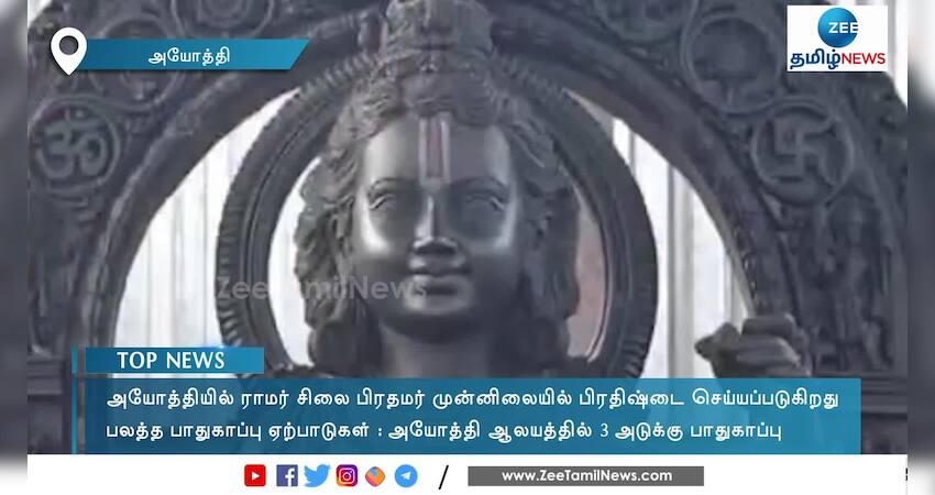 அயோத்தியில் பிரதமர் மோடி முன்னிலையில், ராமர் சிலை நாளை பிரதிஷ்டை செய்யப்படும் நிலையில், பலத்த பாதுகாப்பு ஏற்பாடுகள் செய்யப்பட்டுள்ளன.