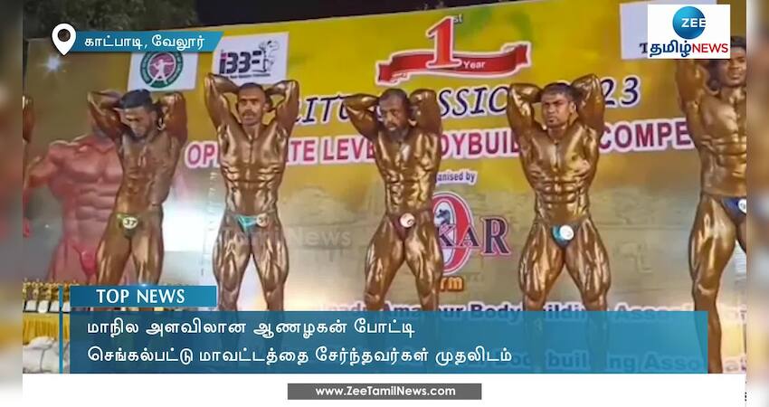 காட்பாடியில் மாநில அளவிலான ஆணழகன் போட்டி நடைபெற்றது இதில் செங்கல்பட்டு மாவட்டத்தை சேர்ந்தவர்கள் முதலிடம் பிடித்து சாம்பியன் பட்டத்தை வென்றனர்