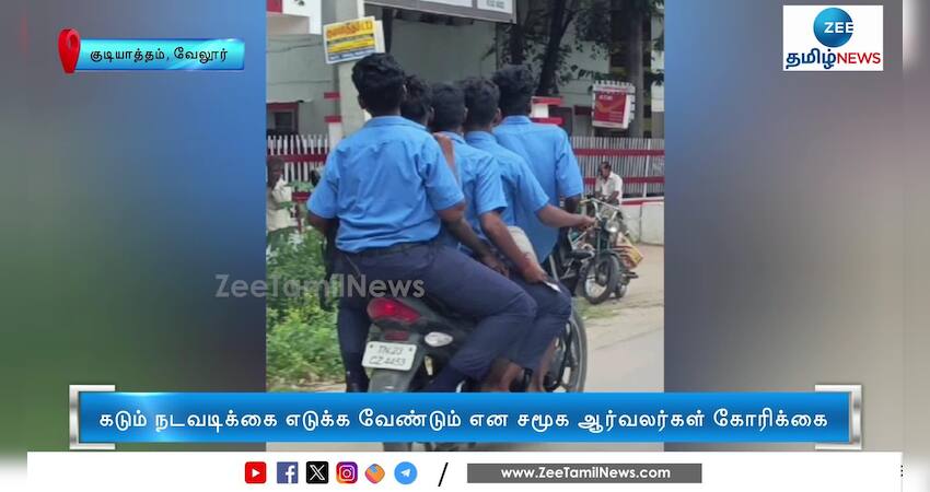வேலூர் அருகே ஒரே பைக்கில் 5 மாணவர்கள் சாலையில் சாகசத்தில் ஈடுபட்ட சம்பவம் பொதுமக்களிடையே அதிர்ச்சியை ஏற்படுத்தியுள்ளனர்.