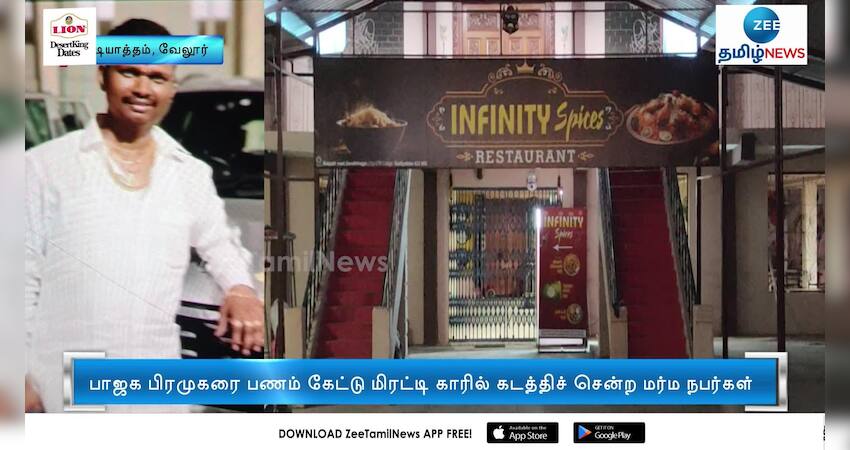 குடியாத்தம் அருகே பாஜக பிரமுகரை பணம் கேட்டு மிரட்டி மர்ம நபர்கள் கடத்திச் சென்ற நிலையில், காவல்துறையினர் காரை பறிமுதல் செய்துள்ளனர்.