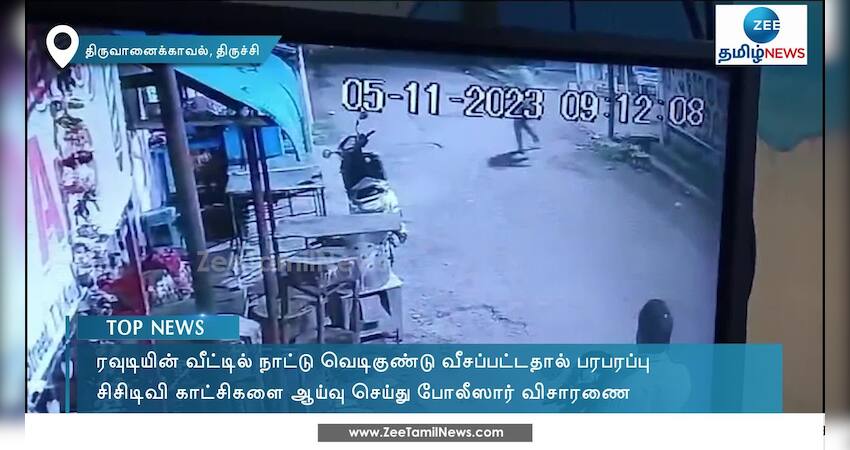 திருச்சி மாவட்டம் திருவானைக்காவல் அருகே ரவுடியின் வீட்டில் நாட்டு வெடிகுண்டு வீசப்பட்ட சம்பவம் பெரும் பரபரப்பை ஏற்படுத்தியுள்ளது.