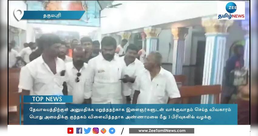 தருமபுரியில் தேவாலயத்திற்குச் சென்றபோது அங்கிருந்த இளைஞர்களுடன் வாக்குவாதத்தில் ஈடுபட்டதற்காக, தமிழக பாஜக தலைவர் அண்ணாமலை மீது 3 பிரிவுகளின் மீது வழக்குப்பதிவு செய்யப்பட்டுள்ளது.