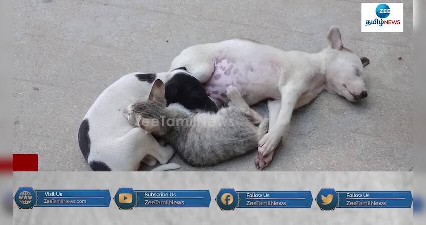 திருப்பத்தூர் அருகே இரண்டு நாய்களுடன், பூனை ஒன்று தூங்கிக்கொண்டிருக்கும் வீடியோ தற்போது வைரலாகி வருகிறது.