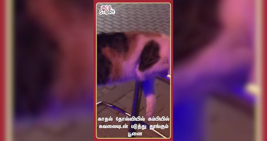 பூனை ஒன்று வெந்து நொந்து போய் கவலையில் கம்பியில் உறங்கும் காட்சி ஒன்று இணையத்தில் பரவி பலரையும் ரசிக்க செய்துள்ளது.