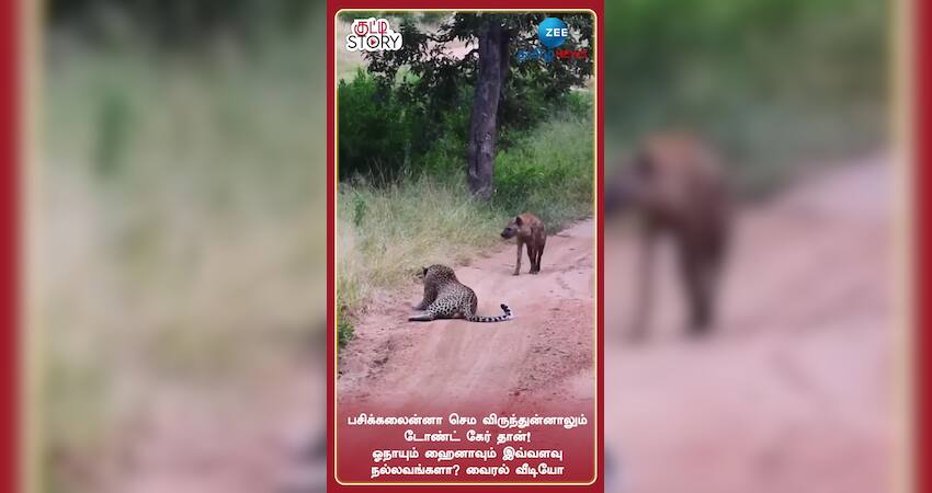 பசிக்கலைன்னா செம விருந்துன்னாலும் டோண்ட் கேர் தான்! ஓநாயும் ஹைனாவும் இவ்வளவு நல்லவங்களா? வைரல் வீடியோ