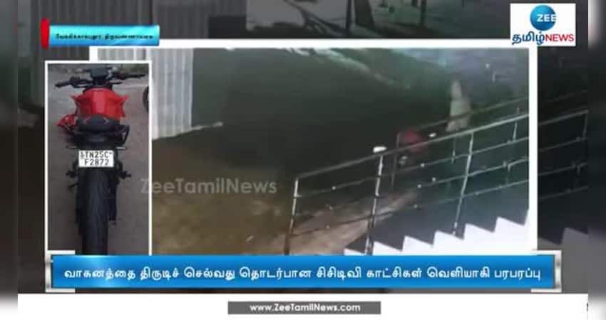 திருவண்ணாமலை அருகே வீட்டில் நிறுத்தி வைக்கப்பட்டிருந்த 3லட்சம் ரூபாய் மதிப்பிலான இருசக்கர வாகனத்தை மர்ம நபர்கள் திருடிச் செல்லும் சிசிடிவி காட்சிகள் வெளியாகி பரபரப்பை ஏற்படுத்தியுள்ளது.