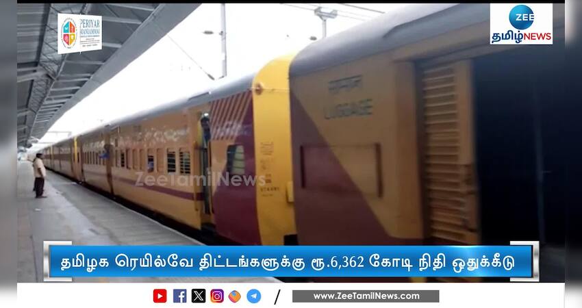 தமிழக ரெயில்வே திட்டங்களுக்கு 6 ஆயிரத்து 362 கோடி ரூபாய் நிதி ஒதுக்கீடு செய்யப்பட்டுள்ளதாக மத்திய அமைச்சர் அஸ்வினி வைஷ்ணவ் தெரிவித்துள்ளார்.