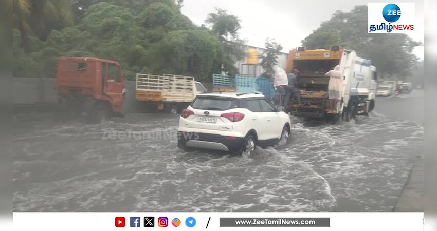 சென்னை புதுவண்ணாரப்பேட்டையில் தேங்கி இருக்கும் மழை நீரால் வாகனத்தை இயக்கமுடியாமல் வாகன ஓட்டிகள் அவதியடைந்து வருகின்றனர்.