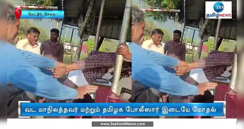 மேட்டூர் அருகே தமிழக எல்லையான காரைக்காடு மதுவிலக்கு சோதனைச் சாவடியில் வட மாநிலத்தவர்கள் மற்றும் தமிழக போலீஸார் இடையே மோதல் ஏற்பட்டதால் அப்பகுதியில் பரபரப்பு ஏற்பட்டது.