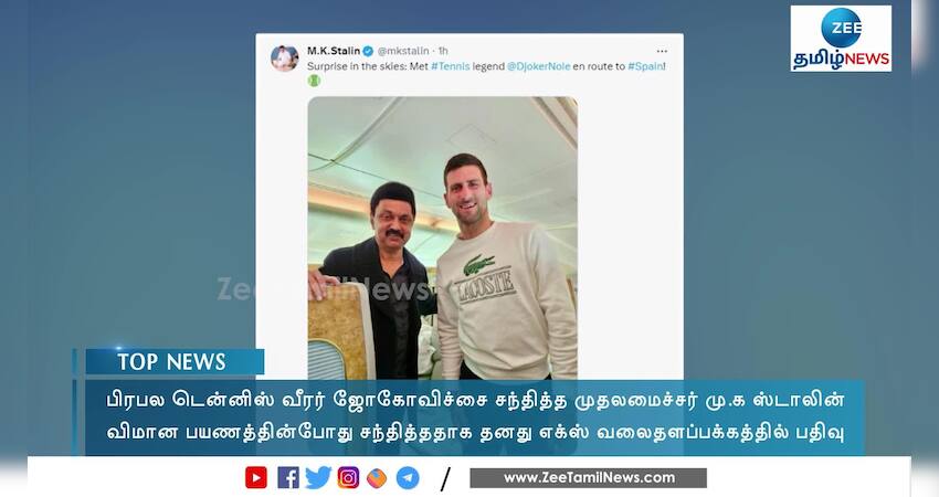 முதலமைச்சர் மு.க ஸ்டாலின் பிரபல டென்னிஸ் வீரர் ஜோகோவிச்சை சந்தித்ததாக தனது எக்ஸ் தளத்தில் பதிவிட்டுள்ளார்
