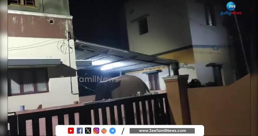 கோவை அருகே வீட்டின் வாயிற்கதவைத் திறந்து உள்ளே நுழைந்த காட்டு யானை ஓன்று சுற்றுச்சுவரை இடித்துவிட்டு அங்கிருந்து வெளியேறிய வீடியோ காட்சிகள் சமூக வலைதளங்களில் வைரலாகி வருகிறது.