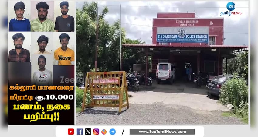 காஞ்சிபுரம் மாவட்டம் ஒரகடத்தில் கல்லூரி மாணவரை மிரட்டி, கூகுள் பே மூலம் பத்தாயிரம் ருபாய் பணத்தை பறித்த ஏழு பேரை போலீசார் கைது செய்துள்ளனர். இது குறித்து இந்த தொகுப்பில் விரிவாக பார்க்கலாம்.