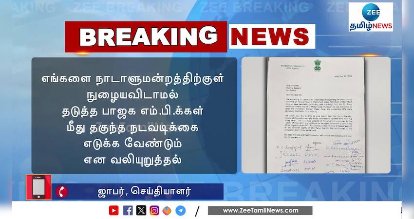 எங்களை நாடாளுமன்றத்திற்குள் நுழையவிடாமல் தடுத்த பாஜக எம்.பி.க்கள் மீது தகுந்த நடவடிக்கை எடுக்க வேண்டும்: காங்கிரஸ் எம்.பி.க்கள் வலியுறுத்தல்