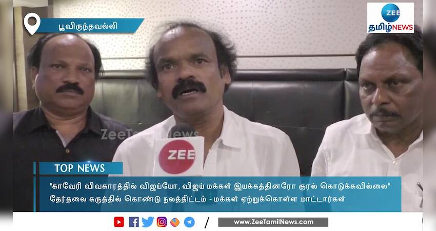 காவேரி நதி நீர் விவகாரத்தில் விஜய்யோ, விஜய் மக்கள் இயக்கத்தினரோ தமிழகத்தின் சார்பாக குரல் கொடுக்கவில்லை என கே.வி.குப்பம் சட்டமன்ற உறுப்பினரும் புரட்சி பாரத கட்சி தலைவருமான பூவை ஜெகன் மூர்த்தி விமர்சித்துள்ளார்.