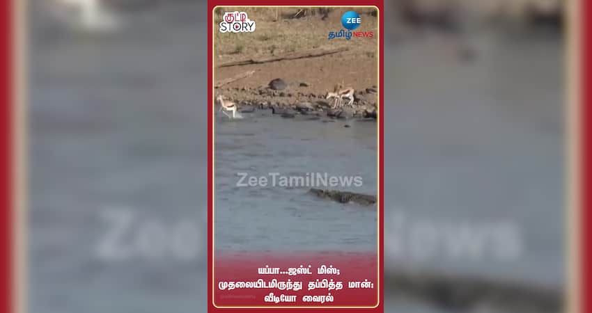 3 மான்கள் தண்ணீருள் வந்தவுடன், அங்கிருந்த முதலை உடனடியாக அந்த மான்களை அட்டாக் செய்ய முயன்ற வீடியோ தற்போது இணையத்தில் வைரலாகி வருகின்றது.
