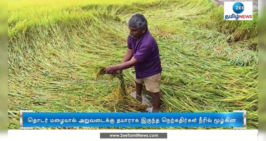 தொடர் மழையால் திருப்பத்தூரில் அறுவடைக்கு தயாராக இருந்த நெற்கதிர்கள் நீரில் மூழ்கி சேதமடைந்த நிலையில், உரிய இழப்பீடு வழங்க வேண்டும் என்று விவசாயிகள் கோரிக்கை விடுத்துள்ளனர்.