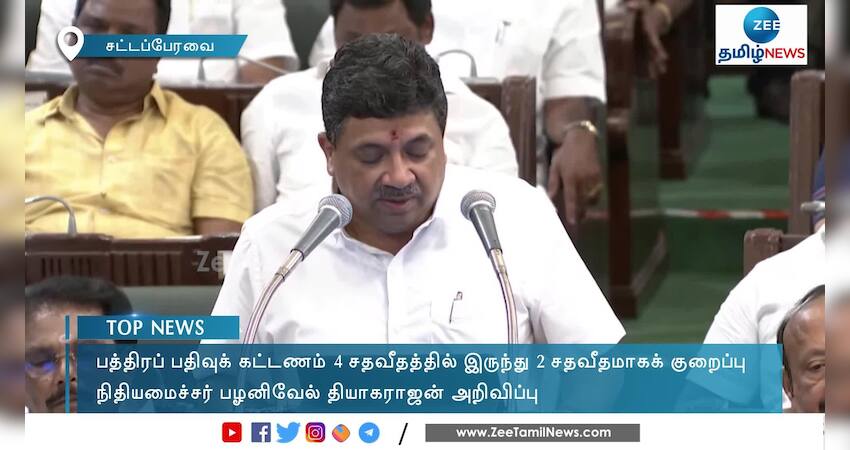 பத்திரப்பதிவுக் கட்டணம் 4 சதவீதத்தில் இருந்து 2 சதவீதமாக் குறைக்கப்பட்டுள்ளது: நிதியமைச்சர் பழனிவேல் தியாகராஜன் அறிவிப்பு