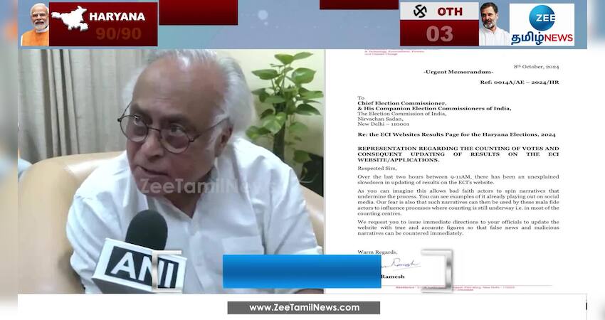 ஹரியானா தேர்தல் முடிவுகளை வெளியிடுவதில் 2 மணி நேரம் விவரிக்கப்படாத வகையிலான காலதாமதம் காணப்பட்டது என்று காங்கிரஸ் கட்சியின் தகவல் தொடர்புக்கான பொதுச் செயலாளர் ஜெய்ராம் ரமேஷ் குற்றம்சாட்டியுள்ளார்.