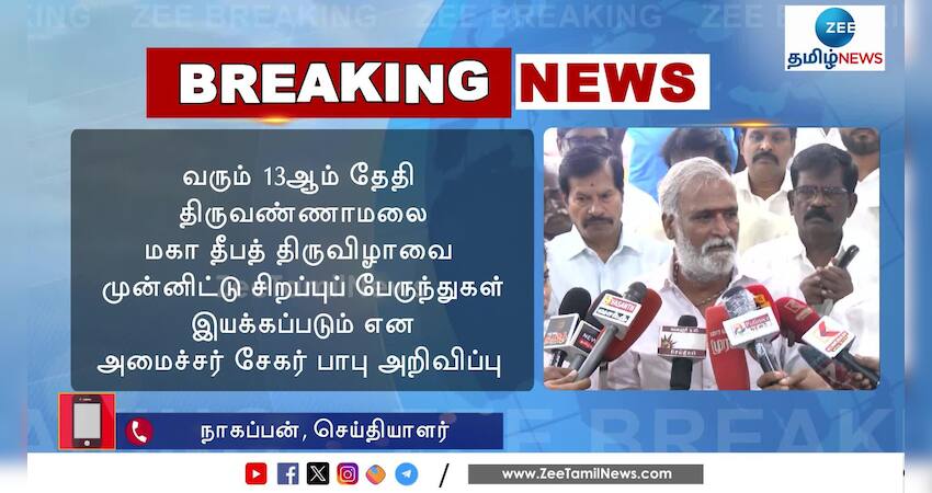 திருவண்ணாமலையில் மகா தீபத்தன்று மலை மீது ஏற பக்தர்களுக்கு அனுமதி இல்லை; பரணி தீபத்துக்கு 300 பேருக்கு மட்டுமே அனுமதி: அமைச்சர் சேகர் பாபு தெரிவித்துள்ளார்.