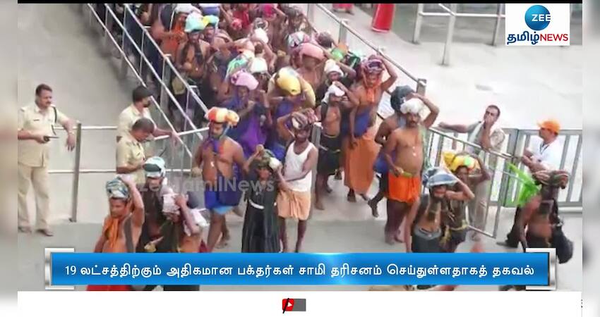 சபரிமலை ஐயப்பன் கோவிலுக்கு வரும் பக்தர்களின் எண்ணிக்கை அதிகரித்து வரும் நிலையில், நேற்று வரை 19 லட்சத்திற்கும் அதிகமான பக்தர்கள் சாமி தரிசனம் செய்துள்ளதாகத் தகவல் வெளியாகியுள்ளது.