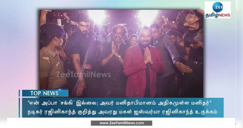 என் அப்பா ‘சங்கி’ இல்லை என்றும், அவர் மனிதாபிமானம் அதிகமுள்ள மனிதர் என்றும் நடிகர் ரஜினிகாந்த் குறித்து அவரது மகள் ஐஸ்வர்யா தெரிவித்துள்ளார்.