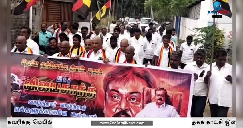 மறைந்த தேமுதிக தலைவர் விஜயகாந்த் ஆன்மா சாந்தியடைய வாணியம்பாடியில் அக்கட்சியினர் மொட்டையடித்து காரியம் செய்து அமைதி ஊர்வலம் நடத்தினர்.