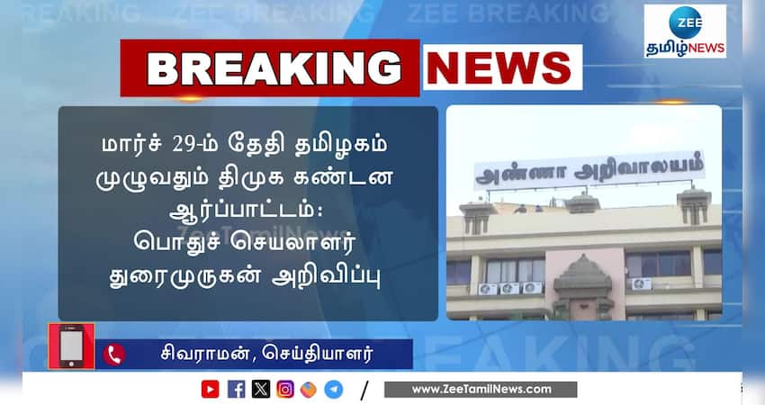 மார்ச் 29-ம் தேதி தமிழகம் முழுவதும் திமுக கண்டன ஆர்ப்பாட்டம் என அக்கட்சியின் பொதுச் செயலாளர் துரைமுருகன் அறிவித்துள்ளார்.