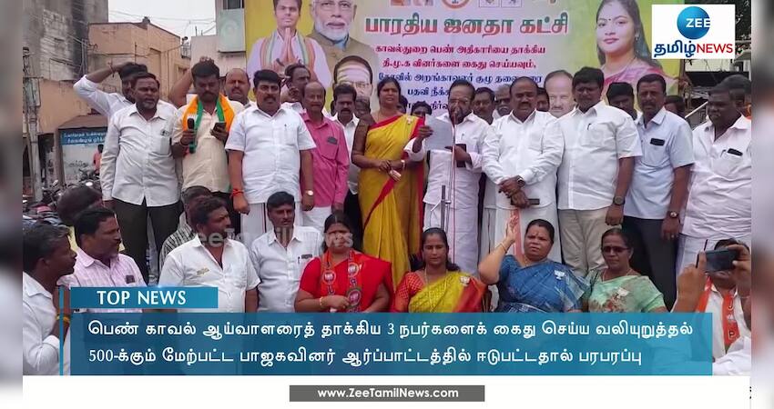 அருணாச்சலேஸ்வரர் கோவிலில் பெண் காவல் ஆய்வாளரைத் தாக்கிய திமுக முன்னாள் நகரமன்றத் தலைவர் உட்பட 3 நபர்களைக் கைது செய்ய வலியுறுத்தி பாஜக சார்பில் கண்டன ஆர்ப்பாட்டம் நடைபெற்றது.