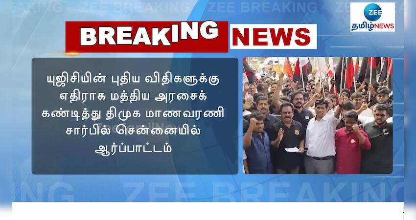 யுஜிசியின் புதிய விதிகளுக்கு எதிராக மத்திய அரசைக் கண்டித்து திமுக மாணவரணி சார்பில் சென்னையில் ஆர்ப்பாட்டம்