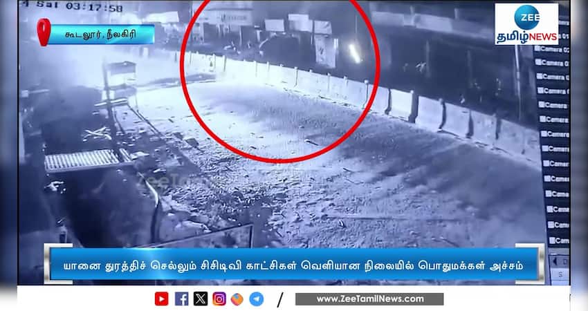 நீலகிரி அருகே சாலையில் உலா வந்த காட்டு யானை சரக்கு வாகனத்தைத் துரத்திச் சென்று சாலையில் இருந்த தடுப்புச் சுவரைத் தாண்டி ஓடும் சிசிடிவி காட்சிகள் வெளியாகி பொதுமக்களிடையே அச்சத்தை ஏற்படுத்தியுள்ளன.