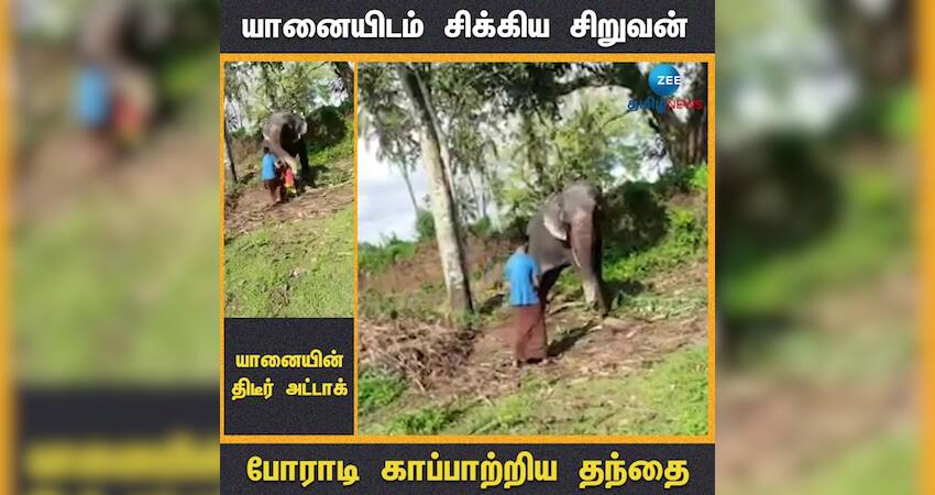 உணவு கொடுக்கச் சென்ற சிறுவனை யானை துதிக்கையால் தூக்கியதால் பரபரப்பு ஏற்பட்டது.