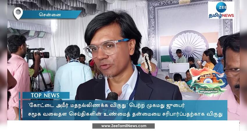குடியரசு தின விழாவில் தமிழ்நாடு அரசின் 2024-ம் ஆண்டிற்கான ‘கோட்டை அமீர் மதநல்லிணக்க விருது’ சமூக வலைதள செய்திகளின் உண்மைத் தன்மையை சரிபார்ப்பதற்காக ஊடகவியலாளர் முகமது ஜுபேருக்கு வழங்கப்பட்டது.