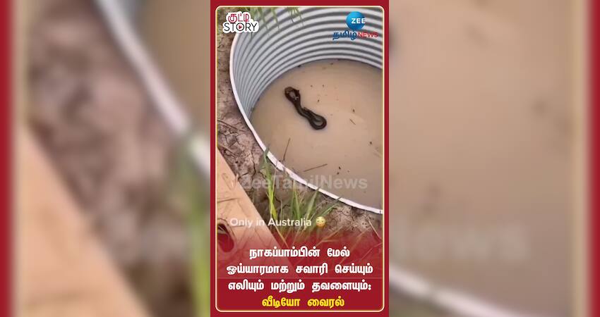 தண்ணீர் குளத்தில் 10 அடி நீள பாம்பின் மீது இரண்டு எலிகள் மற்றும் தவளை ஓய்யாரமாக அமர்ந்து இருப்பதை நீங்கள் காணலாம்.