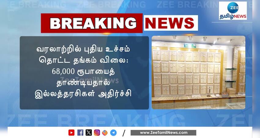 சென்னையில் 22 கேரட் ஆபரணத் தங்கத்தின் விலை சவரனுக்கு ரூ.680 உயர்ந்து ஒரு சவரன் தங்கம் ரூ.68,080க்கு விற்பனை