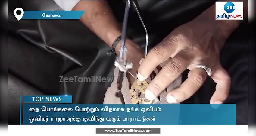 ஜல்லிக்கட்டு, தை பொங்கல், உழவர்களை போற்றி தங்க ஓவியம் வரைந்த கோவை ஓவியர் ராஜாவுக்கு பாராட்டுகள் குவிந்து வருகின்றன.