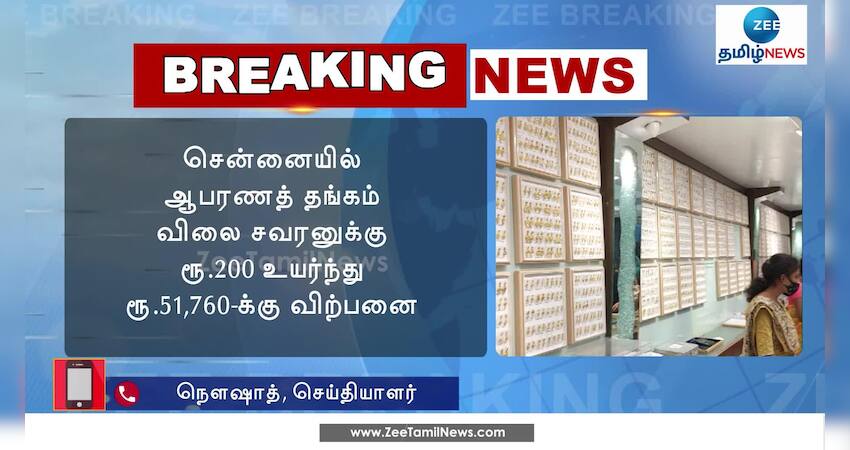 சென்னையில் ஆபரணத் தங்கத்தின் விலை சவரனுக்கு ரூ.200 உயர்ந்து ரூ.51,760-க்கு விற்பனை; தங்கம் விலை கிராமுக்கு ரூ.25 உயர்ந்து ரூ.6,470-க்கும், விற்பனை; வெள்ளி விலை கிராமுக்கு 50 காசுகள் உயர்ந்த நிலையில் ஒரு கிராம் ரூ.87.50-க்கு விற்பனை.