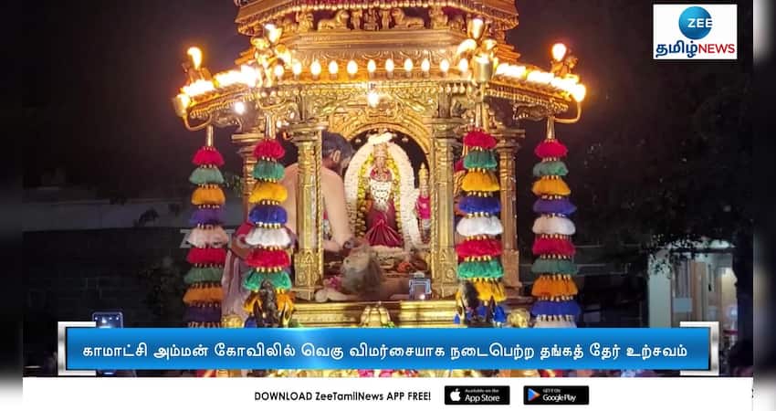 காஞ்சிபுரத்தில் ஆனி மாதம் வெள்ளிக்கிழமையை ஒட்டி காஞ்சிபுரம் காமாட்சி அம்மன் கோவிலில் தங்கத் தேர் உற்சவம் வெகு விமர்சையாக நடைபெற்றது.