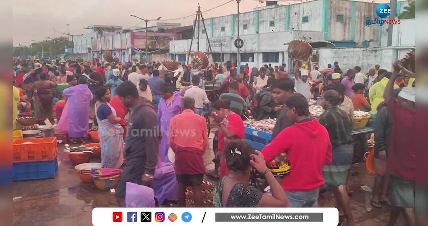 சென்னை காசிமேட்டில், கொட்டும் மழையிலும், மீன்களை வாங்க பெருமளவில் மக்கள் திரண்டனர்.