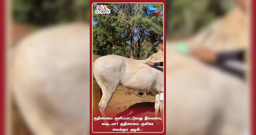 குதிரையை குளிப்பாட்டுவது இவ்வளவு கஷ்டமா? குதிரையை குளிக்க வைக்கும் அழகி...