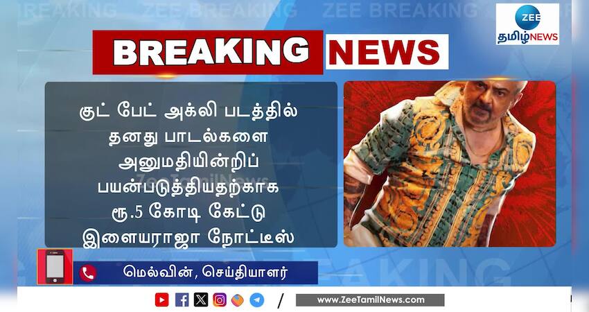 குட் பேட் அக்லி படத்தில் தனது பாடல்களை அனுமதியின்றிப் பயன்படுத்தியதற்காக ரூ.5 கோடி கேட்டு இளையராஜா நோட்டீஸ்