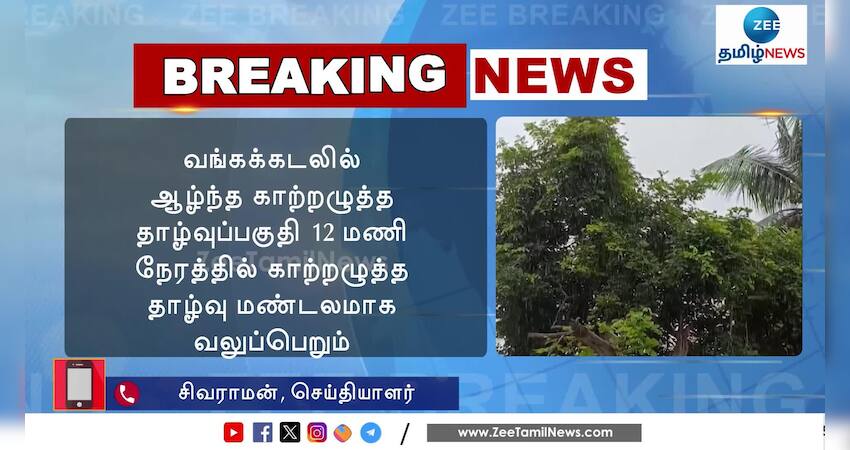 வங்கக்கடலில் ஆழ்ந்த காற்றழுத்த தாழ்வுப்பகுதி 12 மணி நேரத்தில் காற்றழுத்த தாழ்வு மண்டலமாக வலுப்பெறும்.