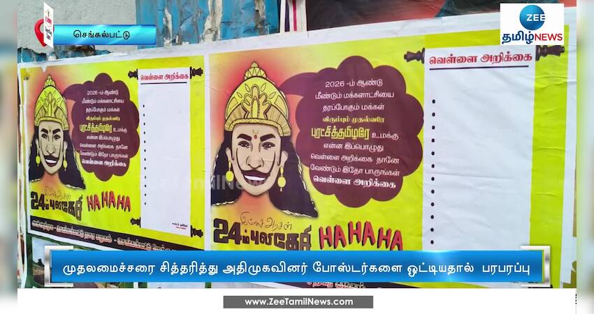 திரைப்படத்தின் கதாப்பாத்திரத்தில் முதலமைச்சர் மு.க.ஸ்டாலினை சித்தரித்து செங்கல்பட்டில் நகர் முழுவதும் அதிமுகவினர் நூதன போஸ்டர்களை ஓட்டியது பரபரப்பை ஏற்படுத்தியுள்ளது.