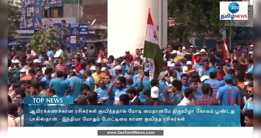 இந்தியா - பாகிஸ்தான் மோதும் இன்றைய போட்டியை காண ஆயிரக்கணக்கான ரசிகர்கள் குவிந்ததால் மோடி மைதானமே திருவிழா கோலம் பூண்டது.