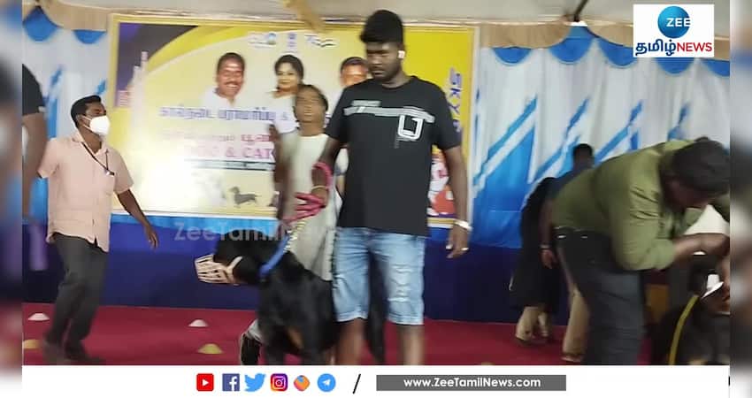 புதுச்சேரியில் நடைபெற்ற நாய்கள் கண்காட்சியில் கலந்து கொண்ட வெளிநாட்டு நாய்கள்