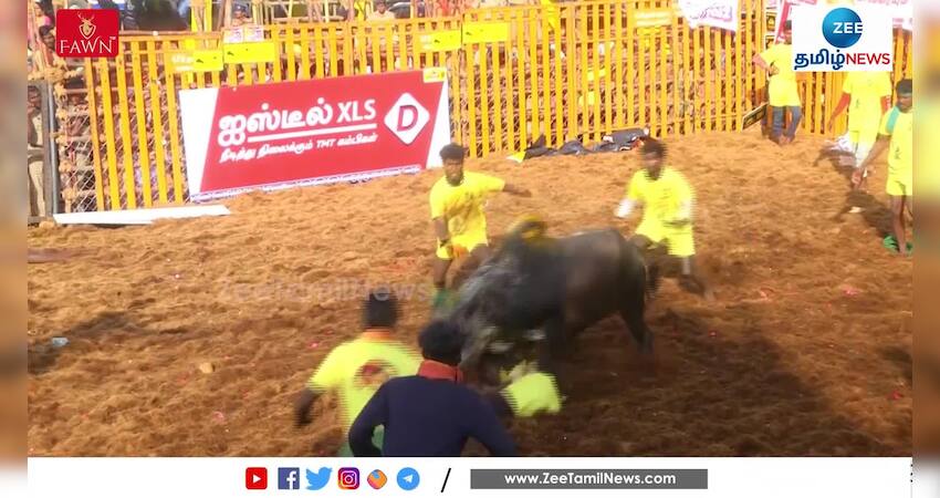 பாலமேடு ஜல்லிக்கட்டு போட்டி மாட்டுப்பொங்கலான இன்று மஞ்சள் மலை ஆற்று மைதான திடலில் நடைபெற்று வருகிறது.